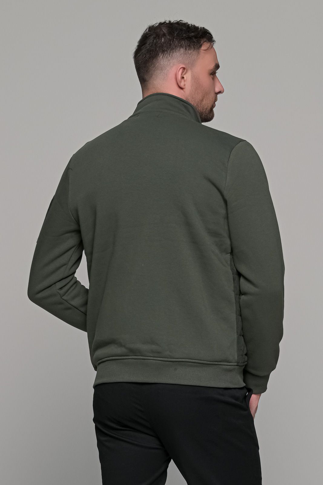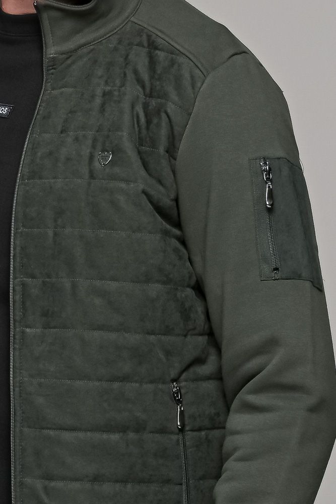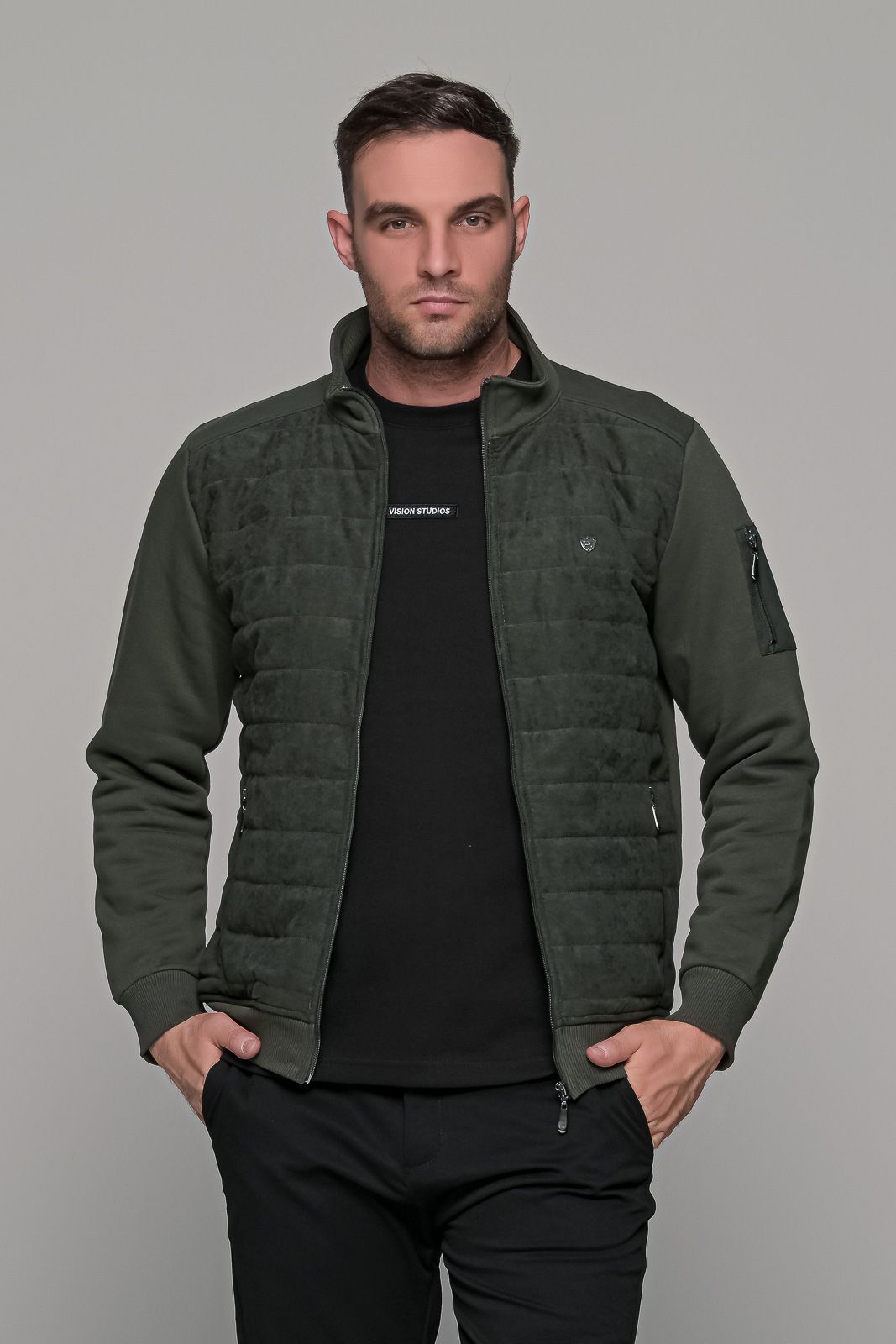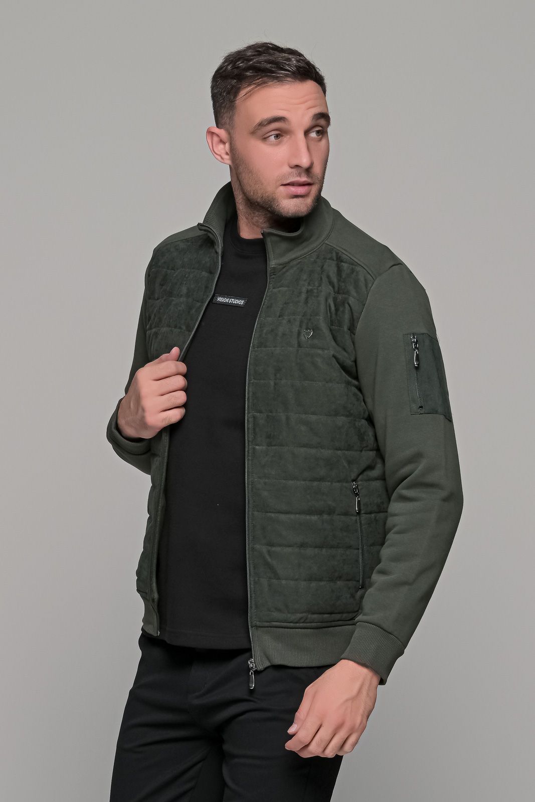 Πράσινη χακί ανδρική ζακέτα με suede επένδυση και φερμουάρ MS – slim fit