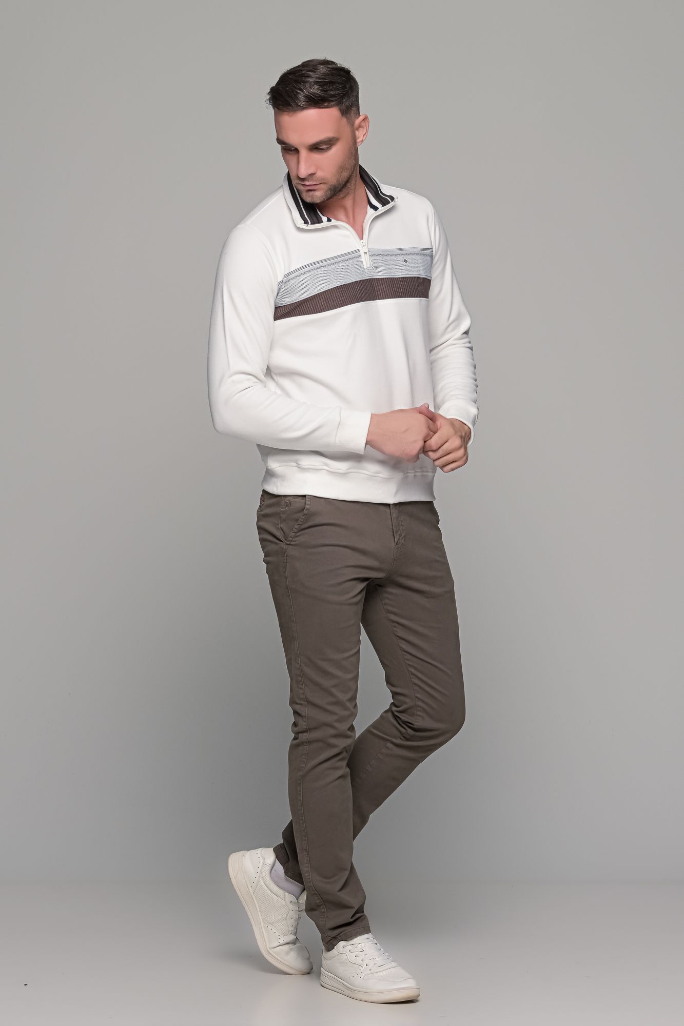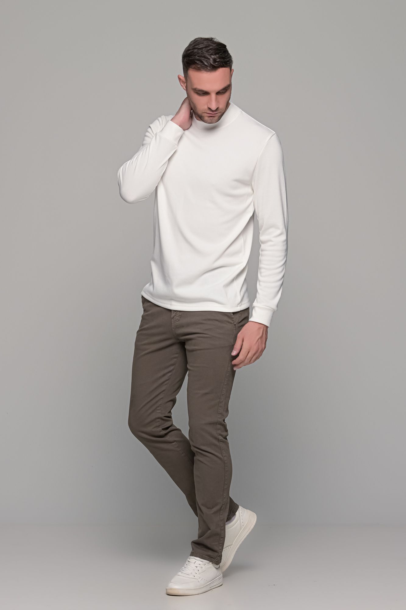 Chinos ανδρικό παντελόνι υφασμάτινο στο χρώμα του Πούρου. To ύφασμα του είναι βαμβάκερό stretch για άνετη εφαρμογή. H γραμμή του είναι στενή (slim fit). Μετά τα πρώτα 10 λεπτά δοκιμής προσαρμόζει στο σώμα του εκάστοτε αγοραστή.  Το Chinos ανδρικό παντελόνι υφασμάτινο στο χρώμα του Πούρου αποτελεί ένα από τα πιο δημοφιλή και διαχρονικά κομμάτια που κάθε άνδρας πρέπει να έχει στην ντουλάπα του. Είναι εύκολο στο σιδέρωμα και πολύ ανθεκτικό, κατάλληλο για καθημερινή χρήση. Ενδείκνυται τόσο για casual ντύσιμο αφού μπορεί να φορεθεί με πουλόβερ, με πουκάμισο ή ακόμα και με φούτερ όσο και για βραδινές εξόδους καθώς μπορεί να συνδυαστεί εξαιρετικά με σακάκι.