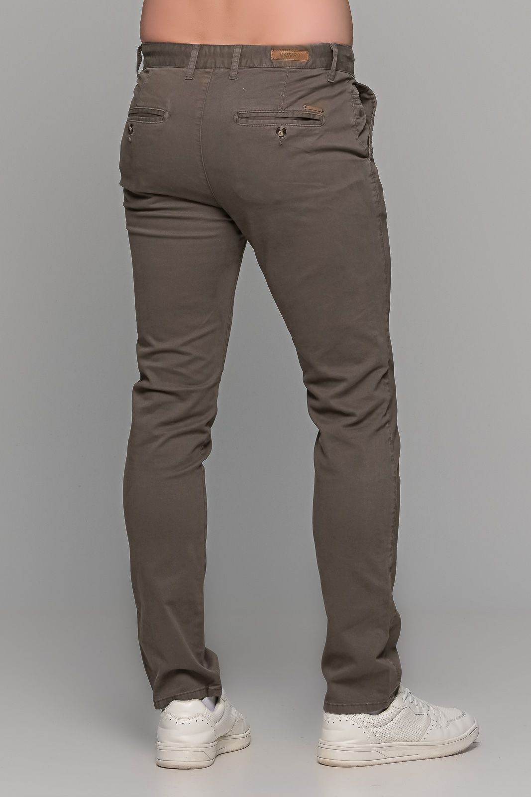 Casual ανδρικό υφασμάτινο παντελόνι chinos στο χρώμα του πούρου. H γραμμή του είναι στενή (slim fit). Τα μεγέθη του είναι κανονικά, οπότε επιλέγετε το μέγεθος που φοράτε συνήθως στα παντελόνια ή τα τζιν σας.