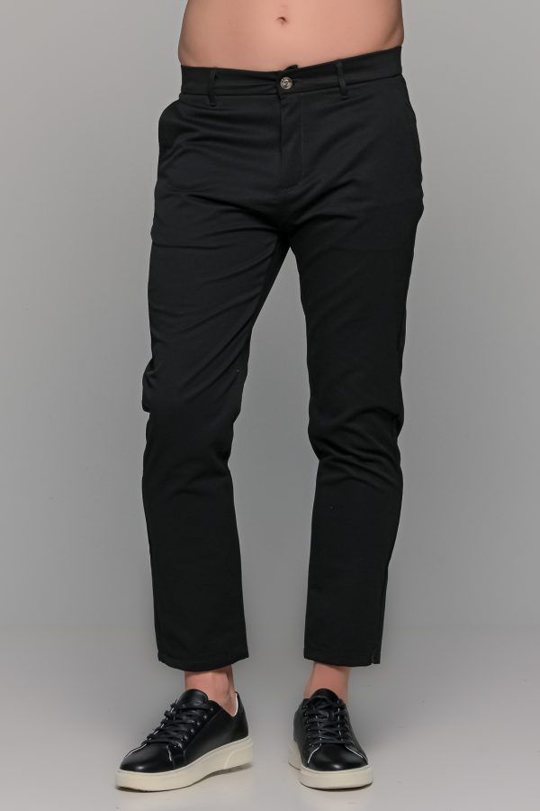 Μαύρο ανδρικό παντελόνι chinos NT με λάστιχο στην μέση – Slim fit