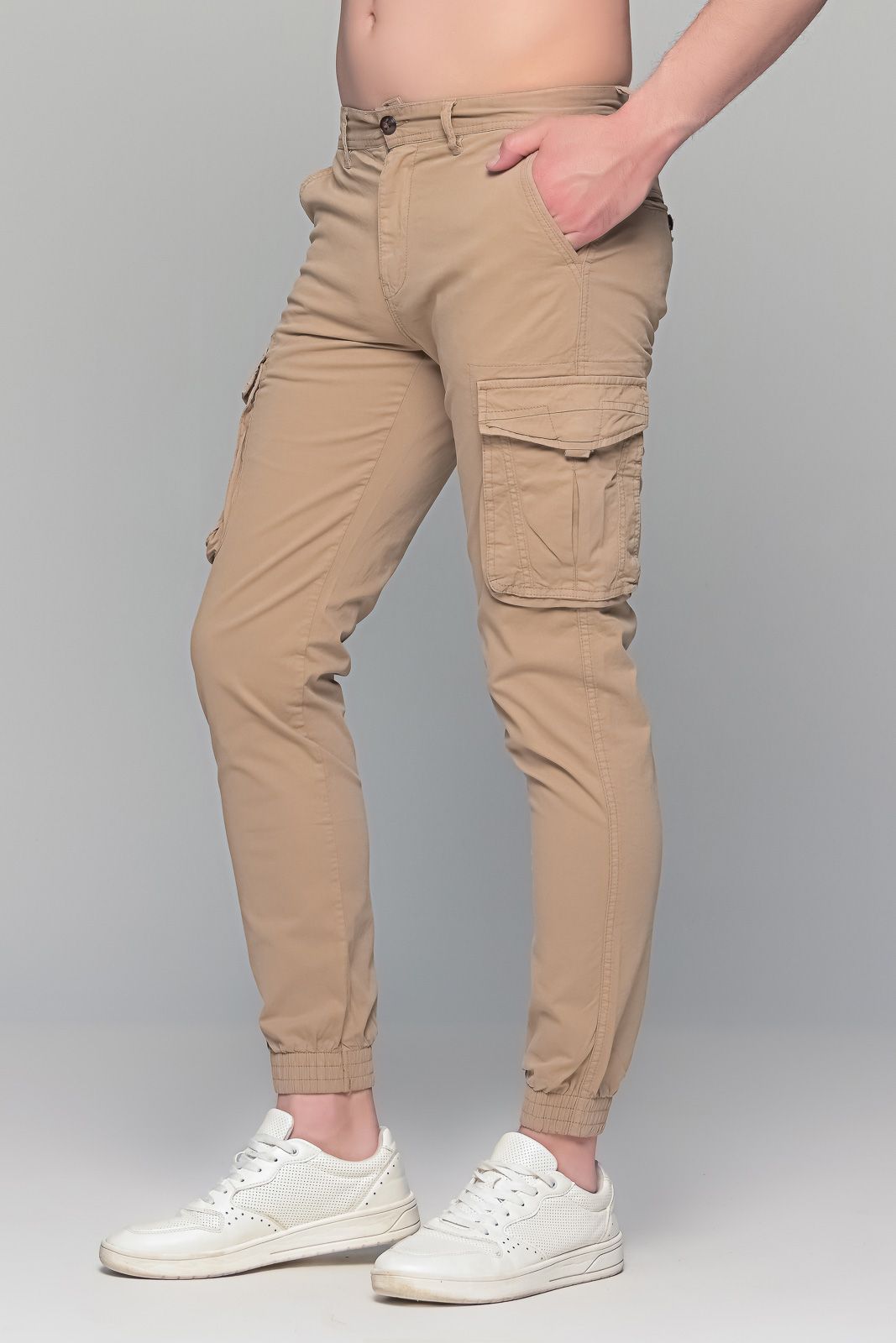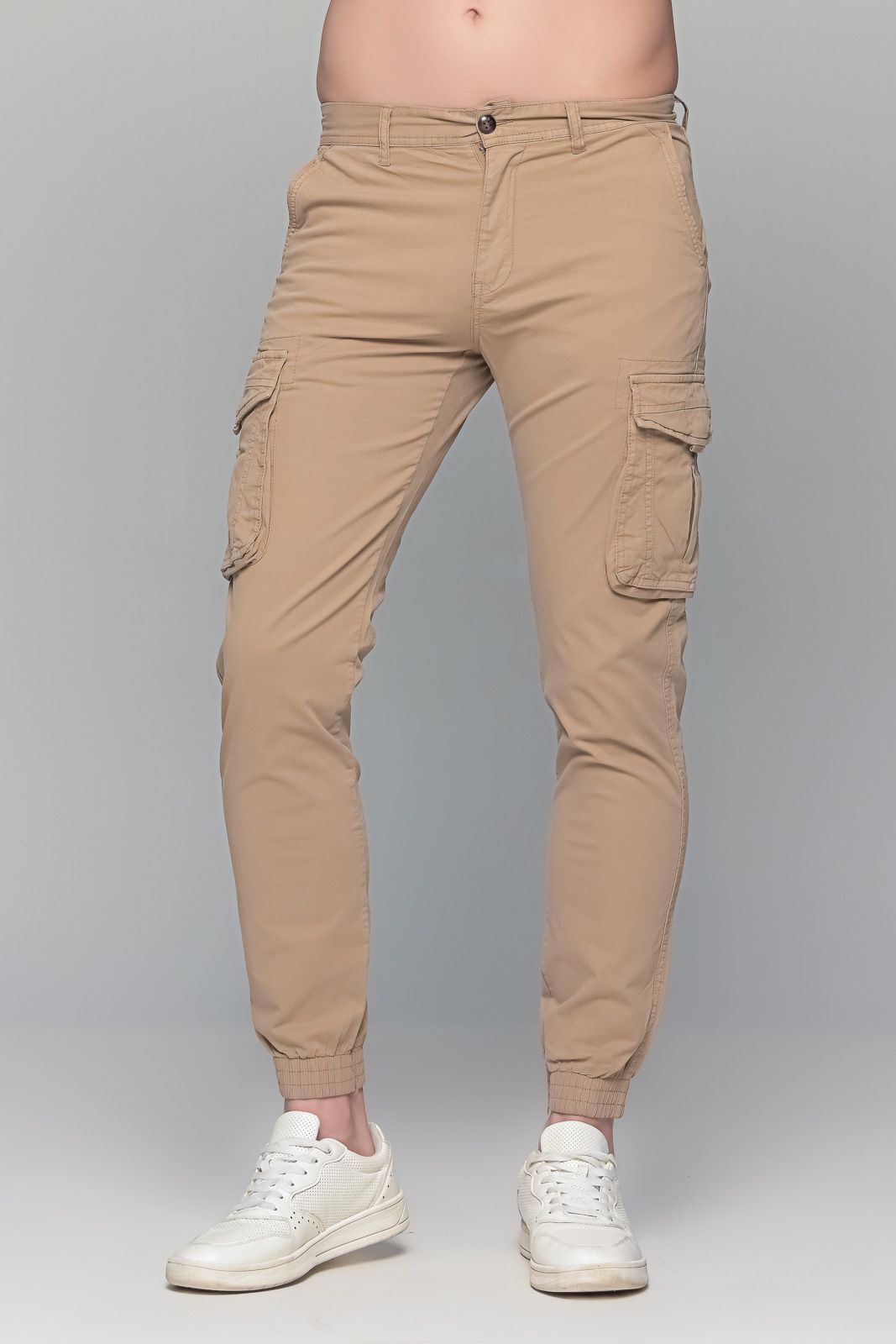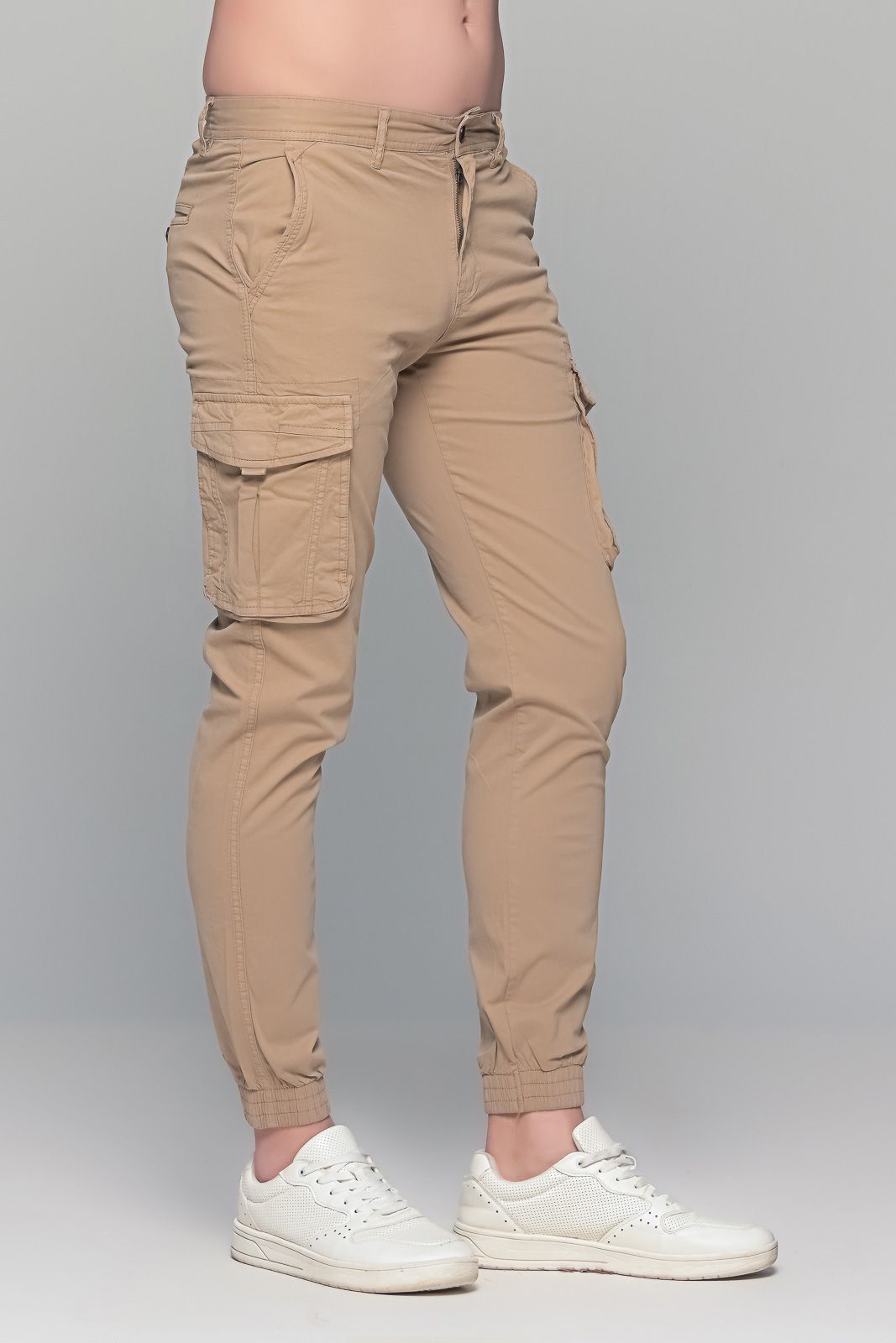 Μπεζ καλοκαιρινό ανδρικό Cargo παντελόνι με τσέπες και λάστιχο – Slim Fit