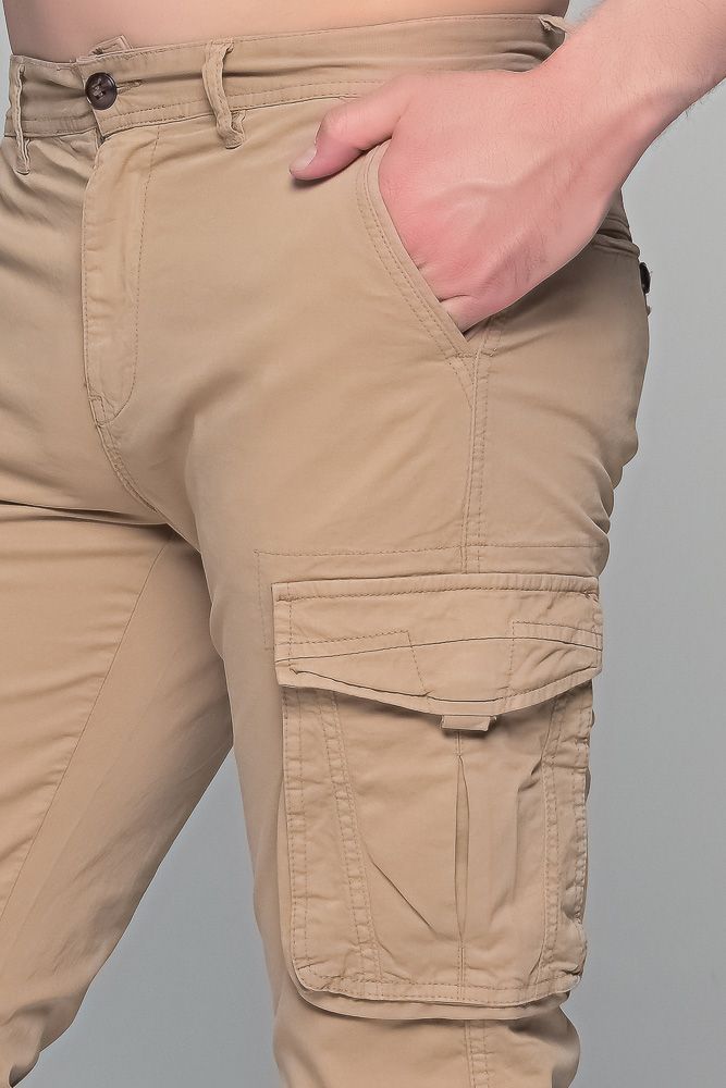 Μπεζ καλοκαιρινό ανδρικό Cargo παντελόνι με εξωτερικές τσέπες στο πλάι και λάστιχο στο τελείωμα στα πόδια σε στενή γραμμή (slim fit). Επειδή το ύφασμα του είναι stretch αγκαλιάζει το σώμα ενώ δεν περιορίζει στις κινήσεις. Μετά τα πρώτα 10 λεπτά δοκιμής προσαρμόζει στο σώμα του εκάστοτε αγοραστή. Έχει τσέπες στο πλάι κι αυτό το καθιστά ιδιαίτερα πρακτικό μιας και πολλοί άνδρες αποφεύγουν τα τσαντάκια, οπότε μπορούν να αποθηκεύουν τα πράγματα τους στις τσέπες. Το χακί είναι ένα διαχρονικό χρώμα που μπορεί να φορεθεί με πολλούς διαφορετικούς συνδυασμούς. Πέρα από τις τσέπες cargo, έχει δυο πλαϊνές εξωτερικές τσέπες ψηλά και δύο πίσω. Το μπεζ καλοκαιρινό ανδρικό Cargo παντελόνι μπορεί να συνδυαστεί εξαιρετικά με t-shirt ή πόλο, ενώ μπορείτε να συμπληρώσετε το look με ένα ανάλαφρο ανοιξίατικο πανωφόρι.