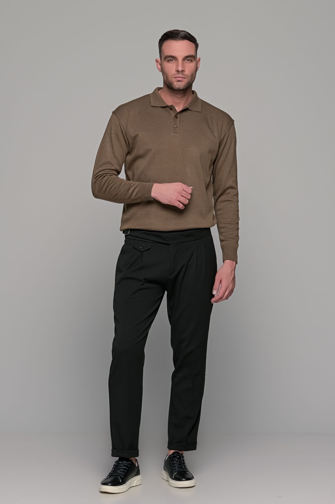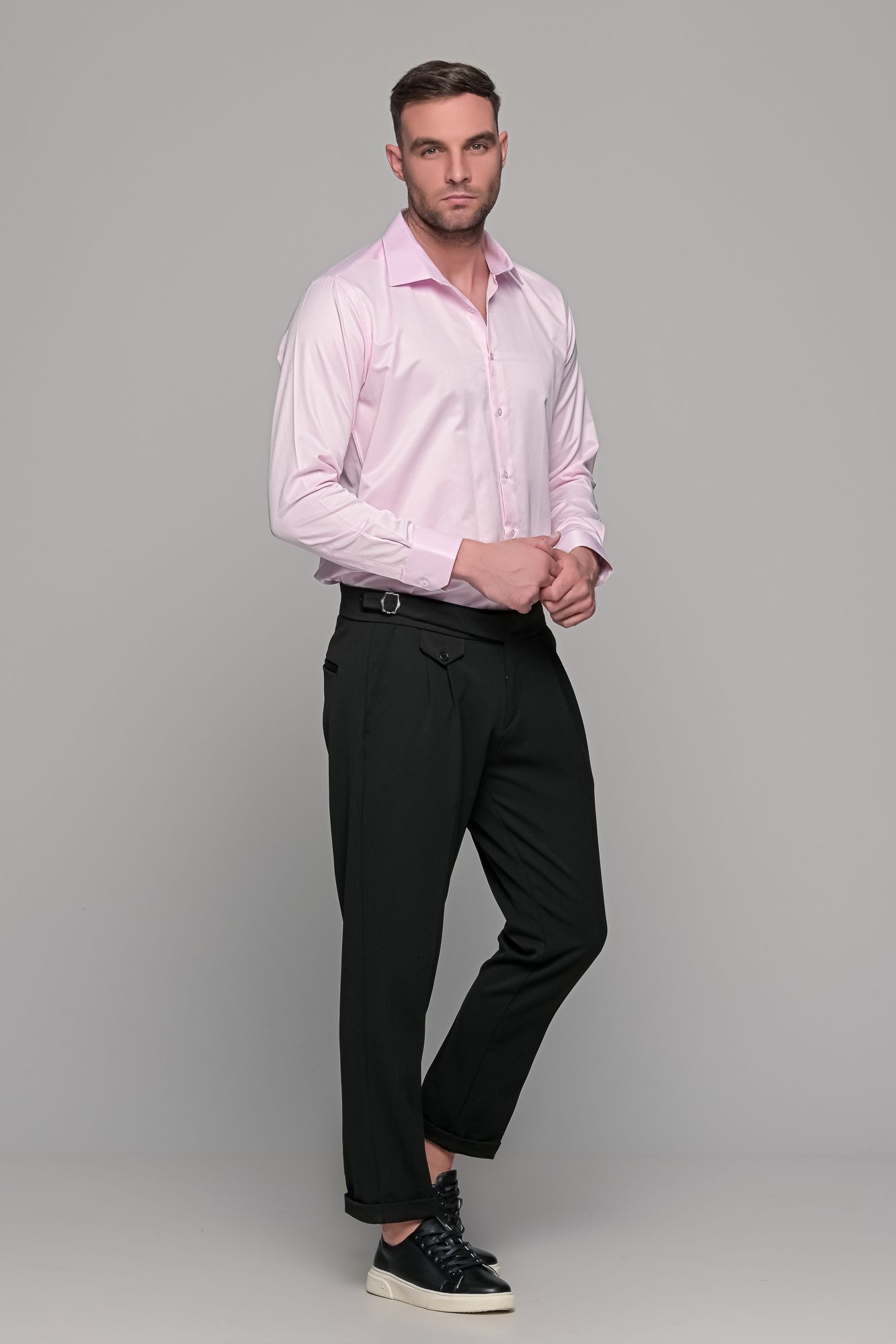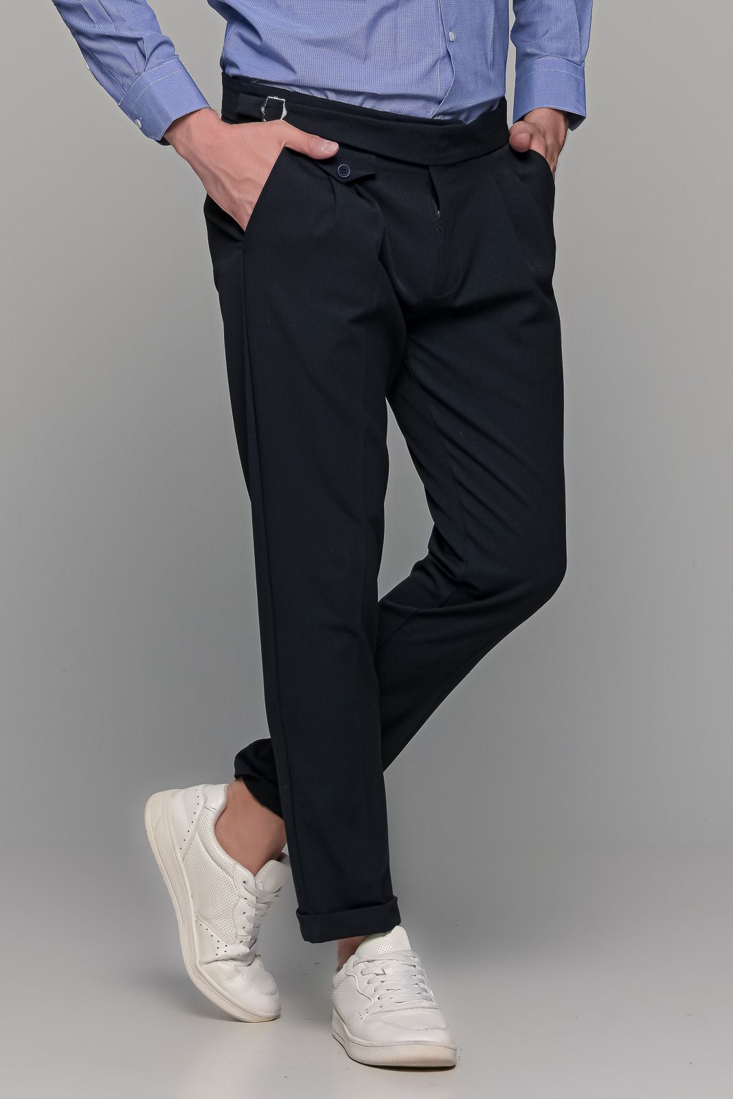 Υφασμάτινο ανδρικό παντελόνι με διπλή πιέτα τύπου κοστουμιού σε χρώμα Μαύρο και φαρδύ ζωνάρι. Η γραμμή του είναι στενή (slim fit) και ενδείκνυται κυρίως για όσους προτιμούν τα εφαρμοστά ρούχα. Για όσους δεν προτιμούν τα στενά ρούχα μπορείτε να επιλέξετε ένα νούμερο μεγαλύτερο από αυτό που φοράτε συνήθως.