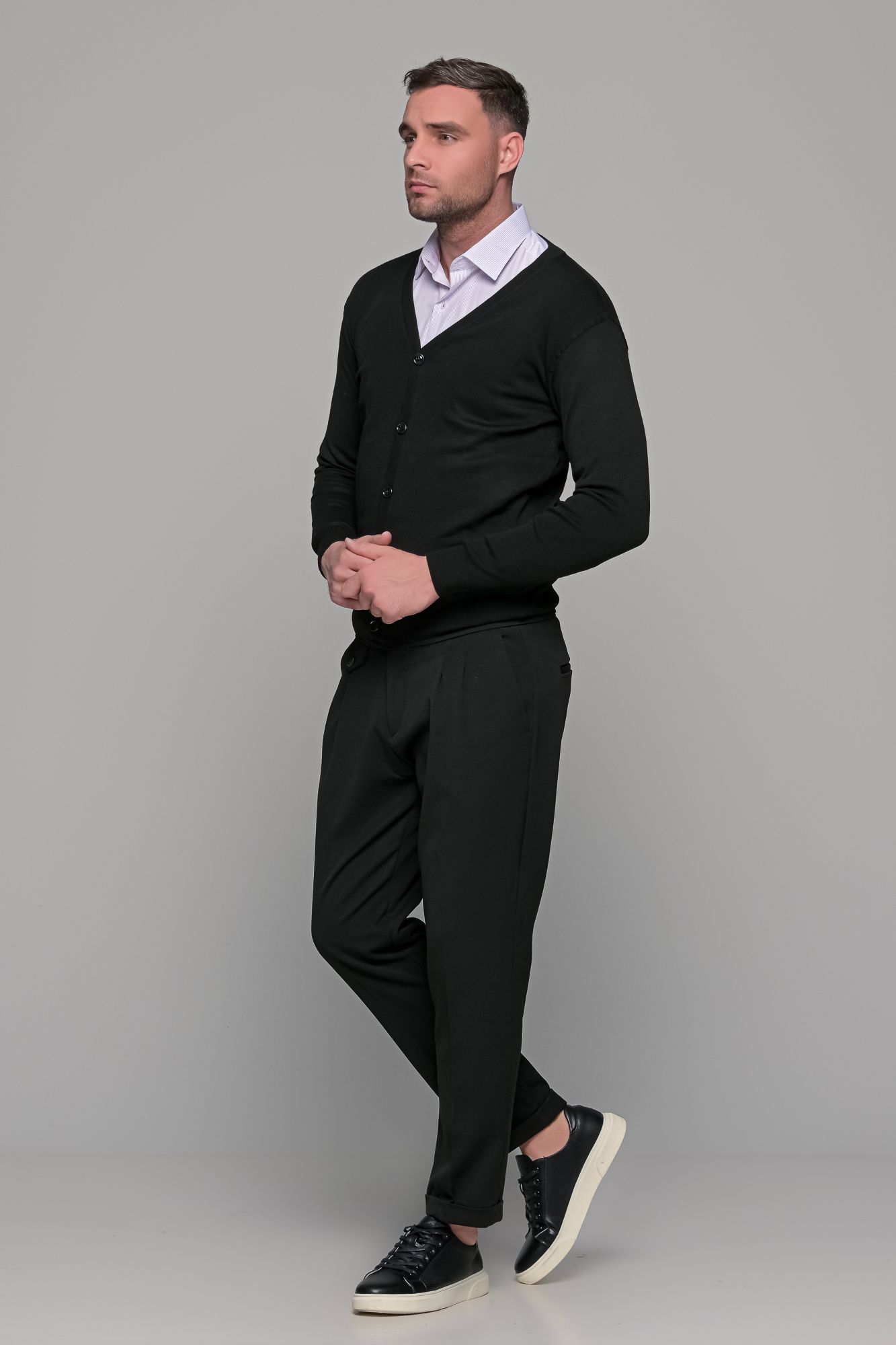 Υφασμάτινο ανδρικό παντελόνι με διπλή πιέτα σε χρώμα Μαύρο – Slim fit