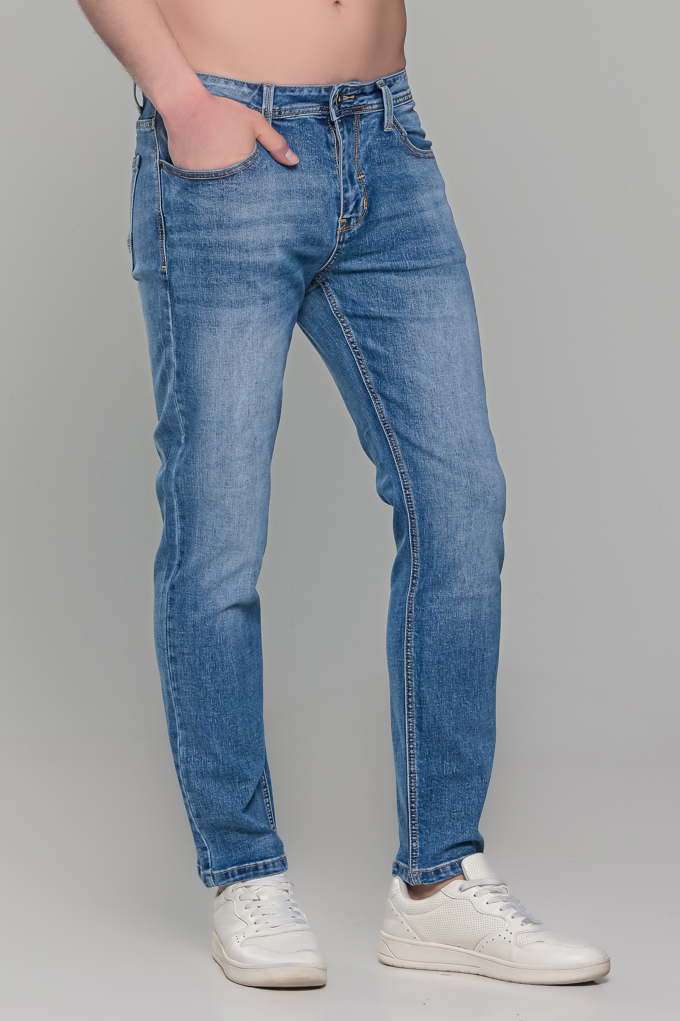 Ανδρικό καλοκαιρινό τζιν Paparazzi σε μπλε χρώμα με ελαφρύ ξέβαμμα – Slim fit