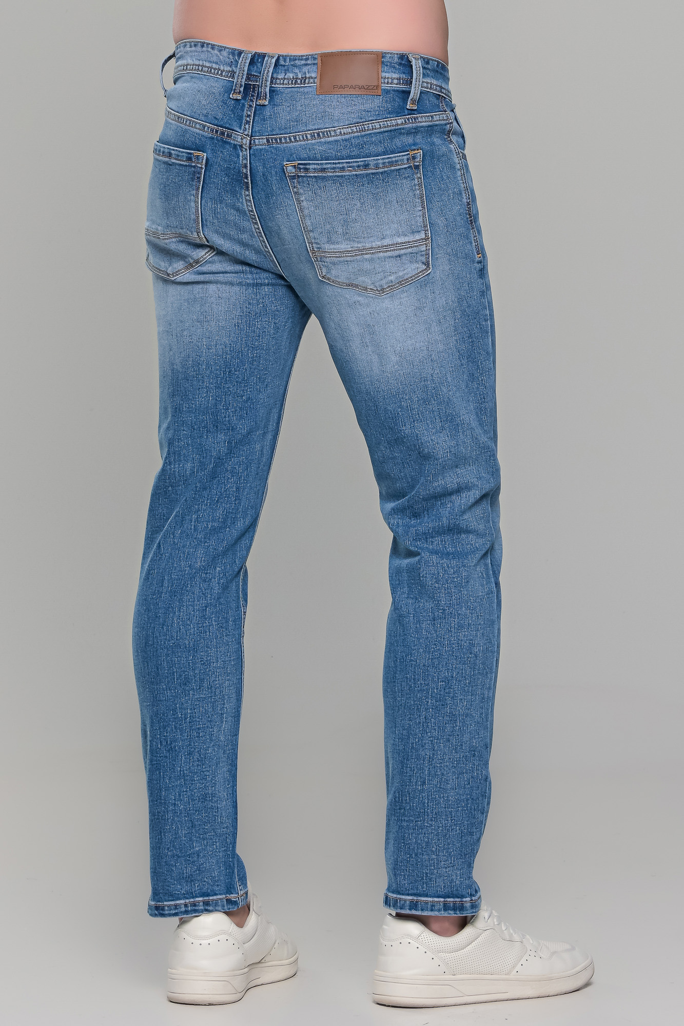 Ανδρικό καλοκαιρινό τζιν Paparazzi μπλε χρώμα σε στενή γραμμή (slim fit) με ελαφρύ ξέβαμμα. Τα μεγέθη του είναι κανονικά, οπότε επιλέγετε το μέγεθος που φοράτε συνήθως στα παντελόνια ή τα τζιν σας.