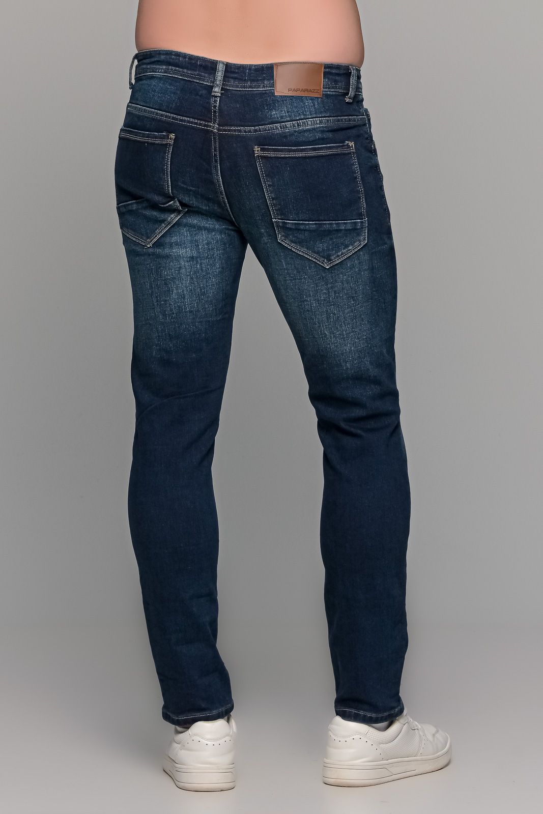Σκούρο μπλε ανδρικό τζιν παντελόνι PAPARAZZI με ξέβαμμα στα πόδια μπροστά και πίσω σε στενή γραμμή (slim fit). Έχει δυο πλαϊνές εξωτερικές τσέπες ενώ κλείνει με φερμουάρ και τρουκ. Το μεγεθολόγιο του είναι κανονικό οπότε επιλέγετε το μέγεθος που φοράτε συνήθως στα παντελόνια ή τα τζιν σας.