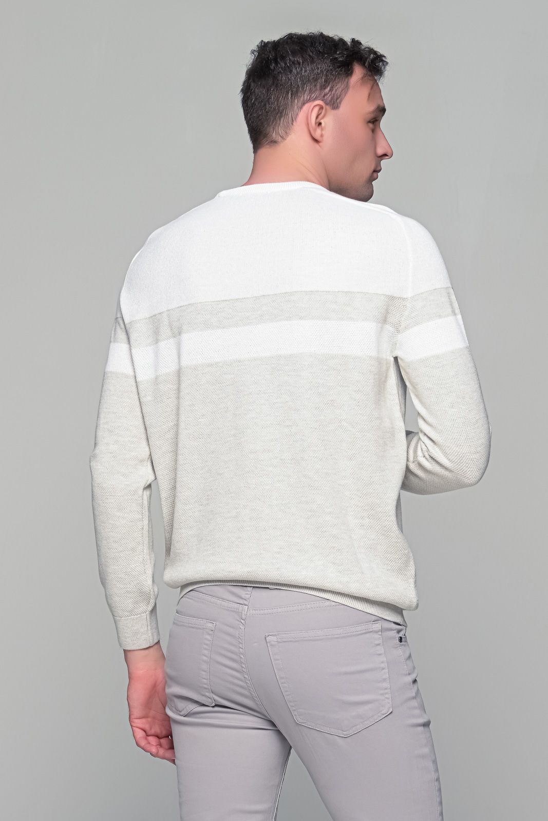Δίχρωμο ανδρικό πουλόβερ Massaro σε χώμα λευκό-μπεζ. Η γραμμή του είναι κανονική (true to size) οπότε προτιμήστε για αγορά το μέγεθος που φοράτε συνήθως.