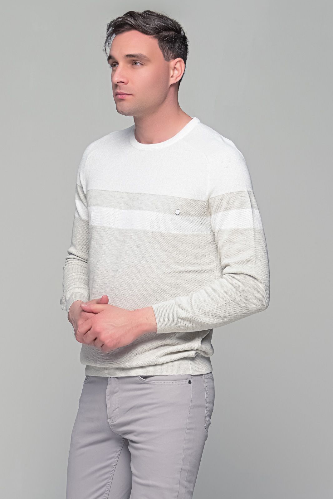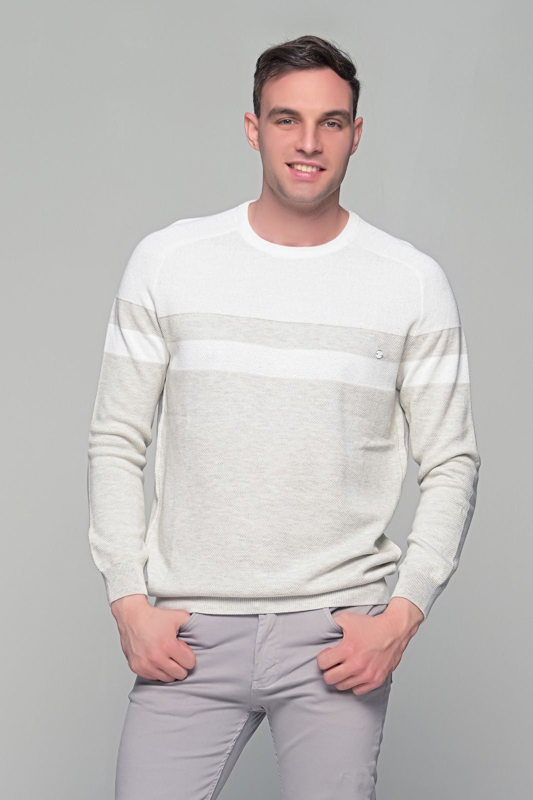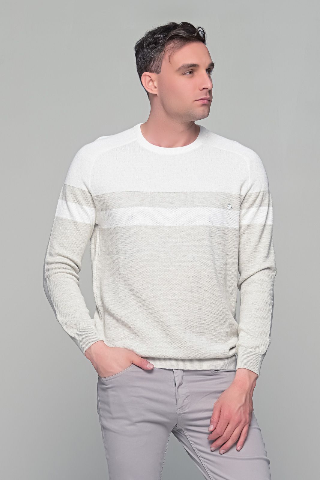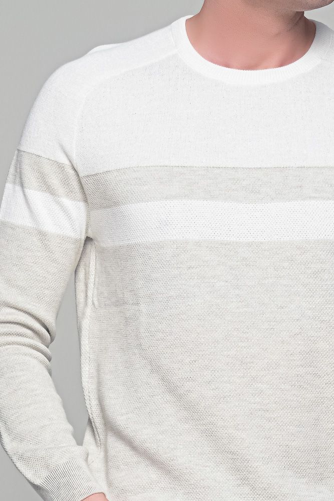 Δίχρωμο λευκό-μπεζ ανδρικό πουλόβερ Massaro