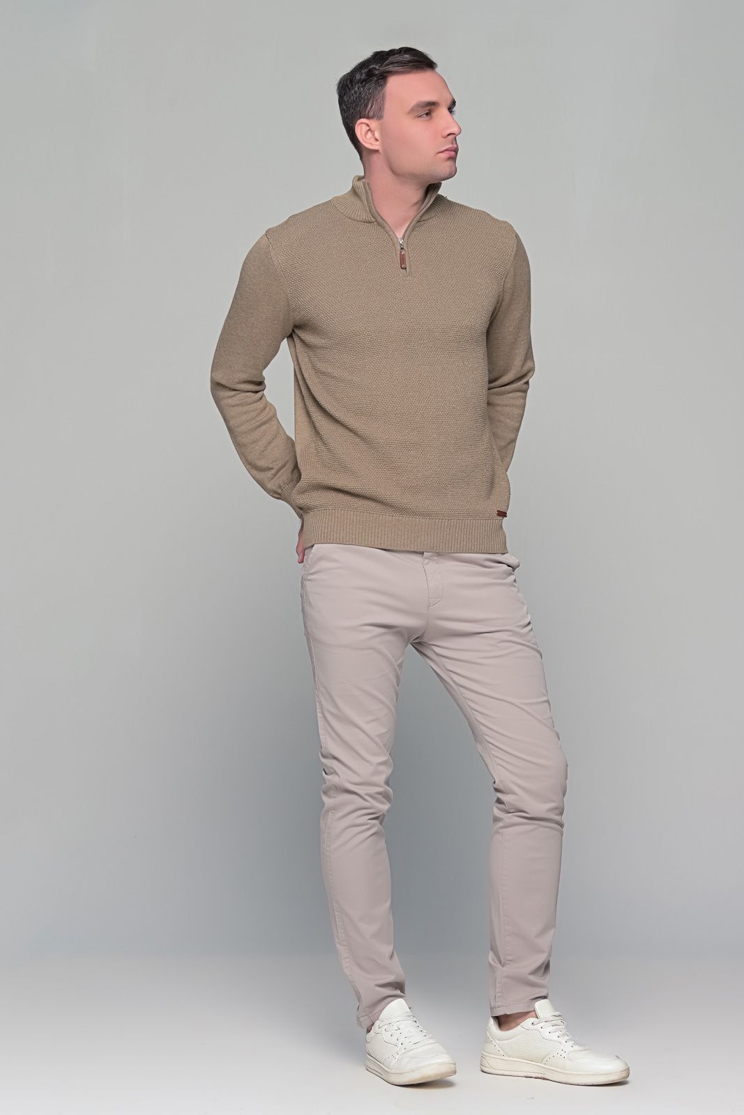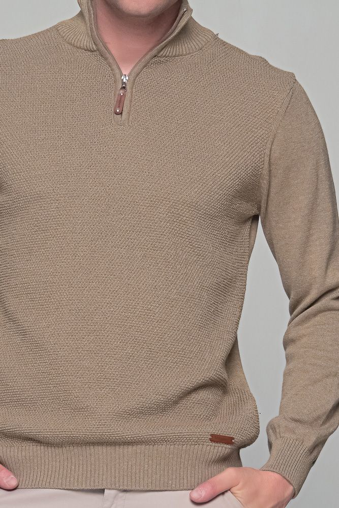 Μπεζ ανδρικό Half Zipper πουλόβερ με πλέξη γκοφρέ Massaro