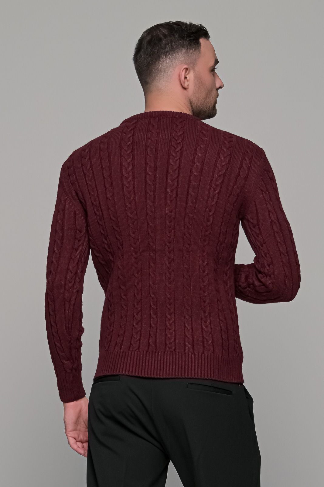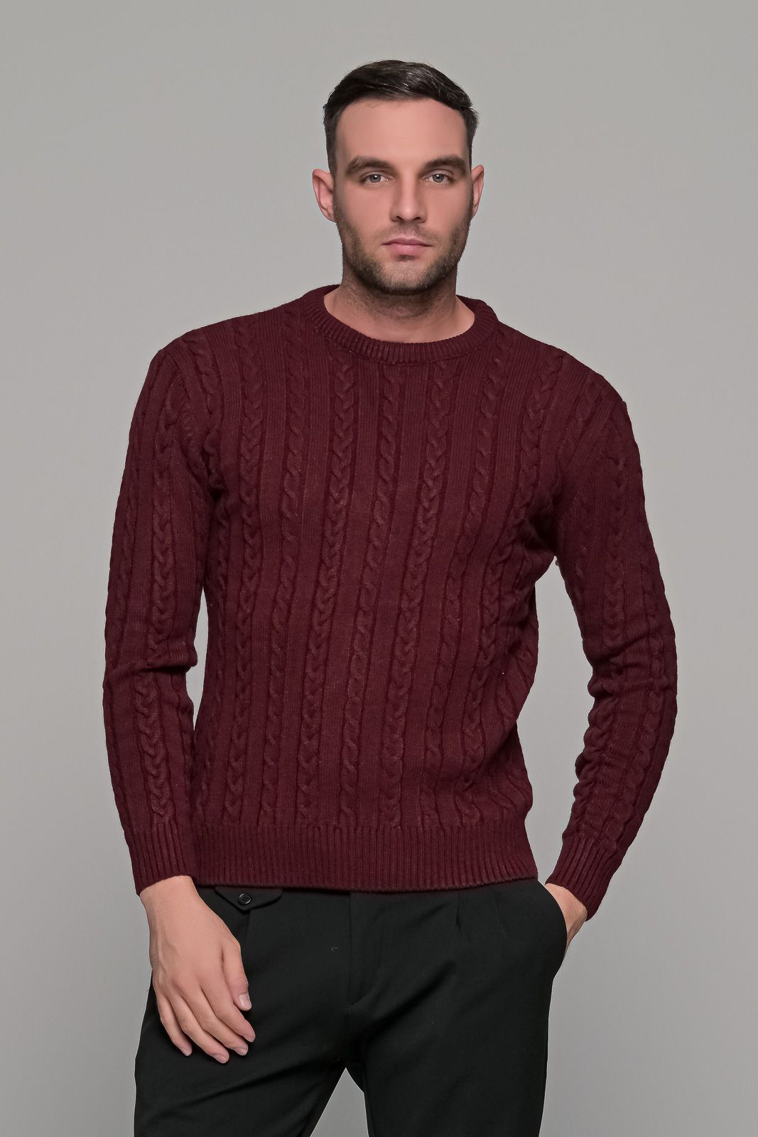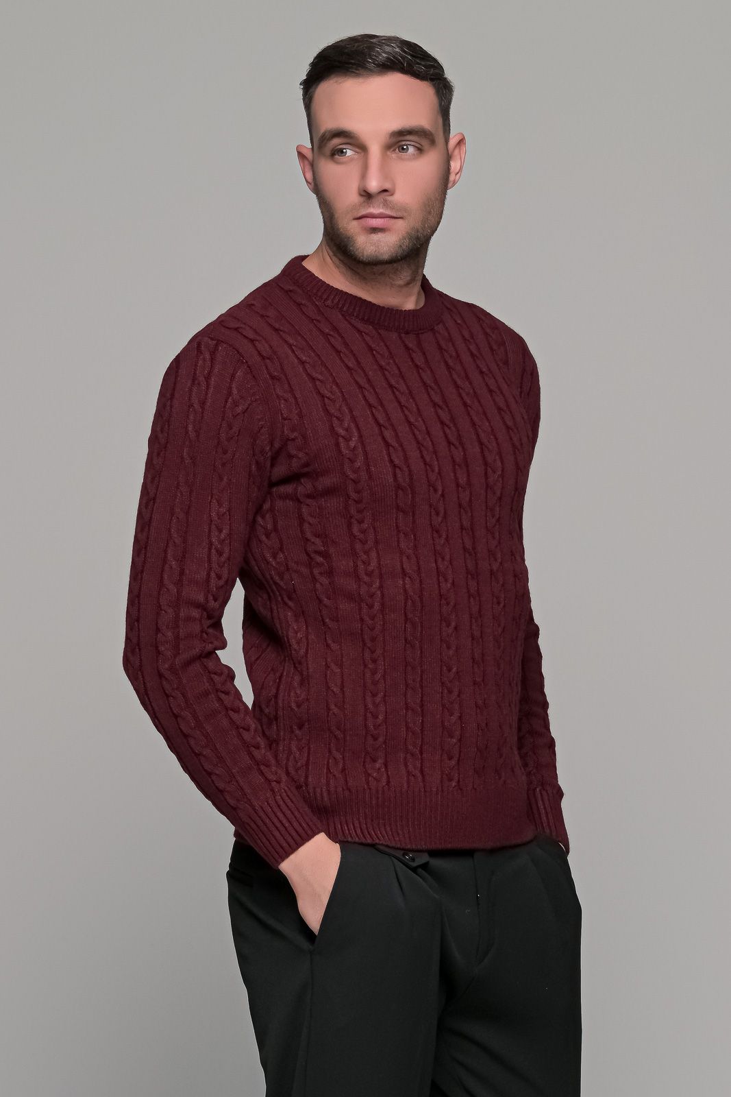 Mπορντό ανδρικό πλεκτό πουλόβερ με πλέξη κοτσίδα