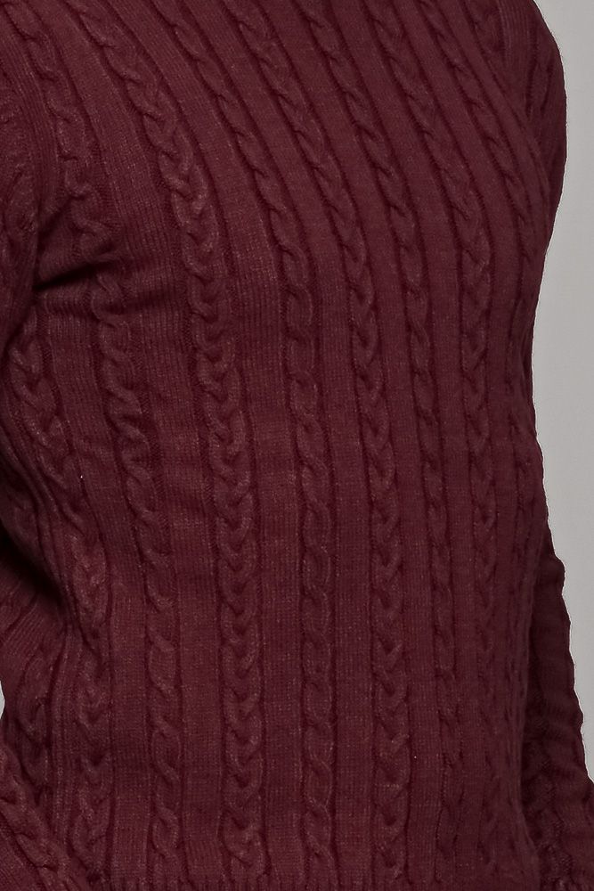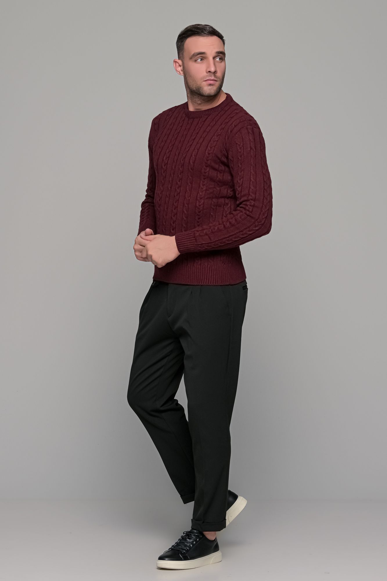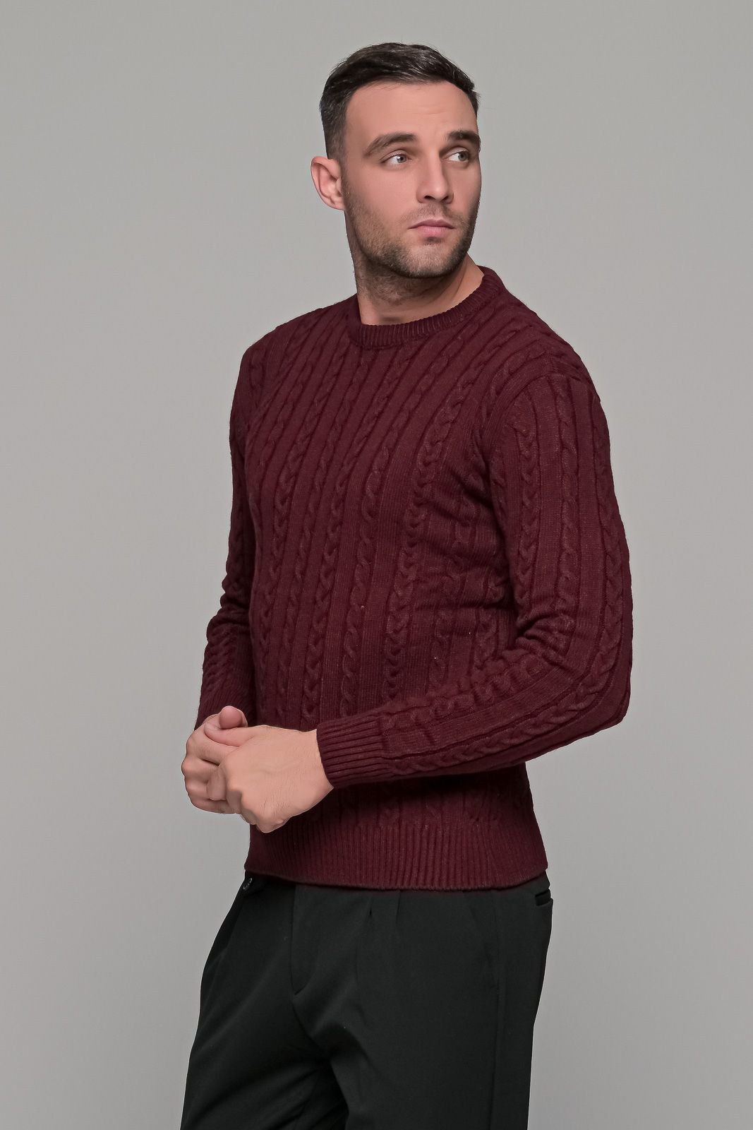 Mπορντό ανδρικό πλεκτό πουλόβερ με πλέξη κοτσίδα