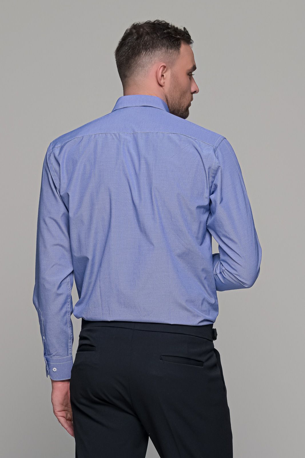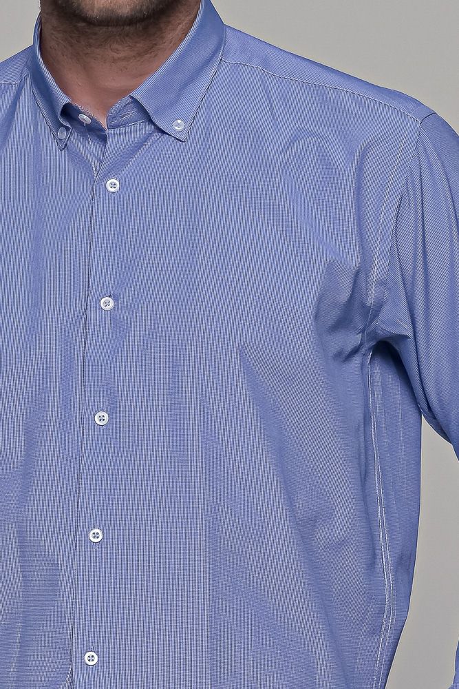 Καρό πουκάμισο μπλε με λευκό μικροσχέδιο PAPARAZZI χωρίς Τσεπάκι – Classic Fit