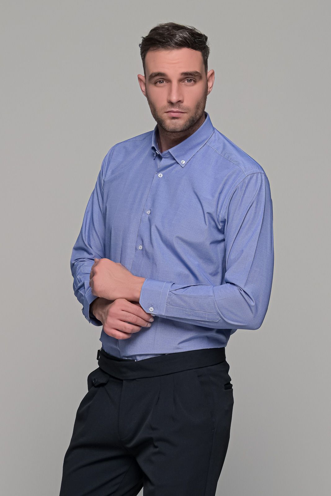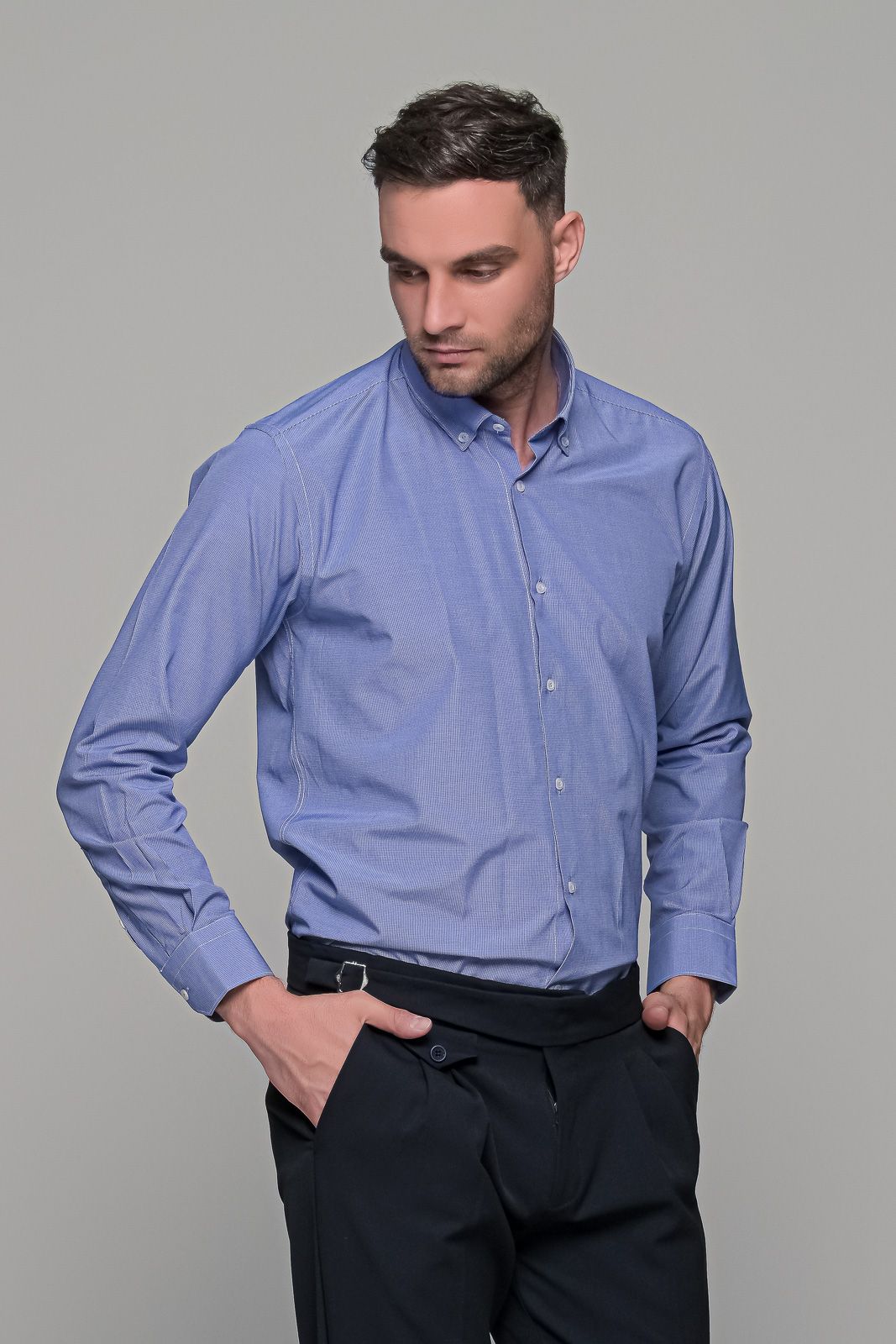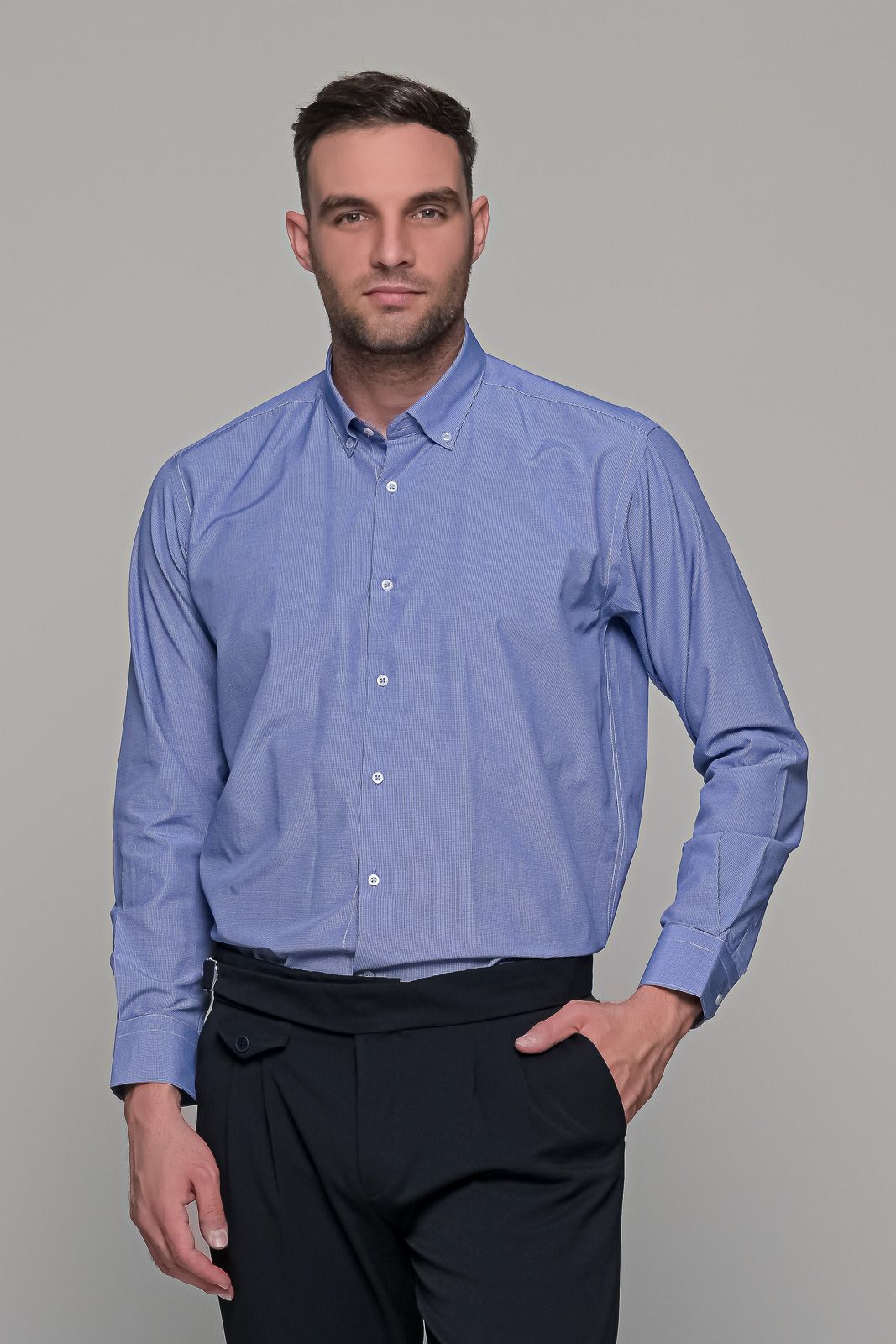 Καρό πουκάμισο μπλε με λευκό μικροσχέδιο μακρυμάνικο και κουμπί στον γιακά .Είναι κατασκευασμένο από βαμβάκι για να αναπνέει το δέρμα, ενώ έχει υποστεί ειδική επεξεργασία για να είναι easy iron. Μπορεί να φορεθεί με σακάκι για πιο formal εμφανίσεις ή με ένα πλεκτό πουλόβερ για πιο casual εμφανίσεις, ενώ μπορεί να φορεθεί είτε μέσα είτε έξω από το παντελόνι. Το καρό πουκάμισο μπλε με λευκό μικροσχέδιο είναι εύκολο στο σιδέρωμα και πολύ ανθεκτικό, κατάλληλο για καθημερινή χρήση. Η γραμμή του είναι κλασική (classic fit) και η εφαρμογή του άνετη (loose fit).  Τα μεγέθη του είναι κανονικά, οπότε επιλέγετε το μέγεθος που φοράτε συνήθως στην κλασική γραμμή.