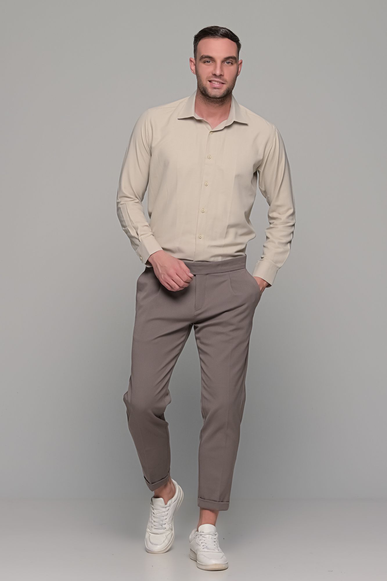 Μπεζ oxford πουκάμισο PAPARAZZI χωρίς Τσεπάκι – Classic Fit